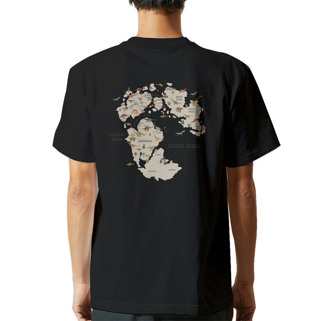 tシャツ メンズ 半袖 バックプリント ブラック デザイン XS S M L XL 2XL ティーシャツ T shirt 019762 恐竜 地図 mapdinosaur