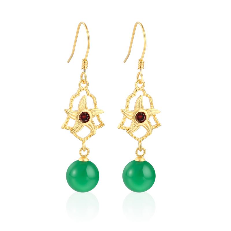 ピアス キャッチなし 落ちない イヤーフック ヒトデ 星 マーメイド モチーフ ラインストーン 揺れる キラキラ 華やか ゴールド 緑