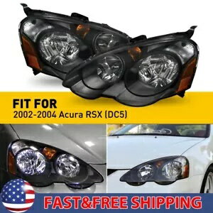 ブラックハウジングヘッドライトアセンブリ右ペア左 2002-2004 アキュラ RSX DC5 Black Housing Headlight Assembly Right Pair Left For 2002-2004 Acura RSX DC5