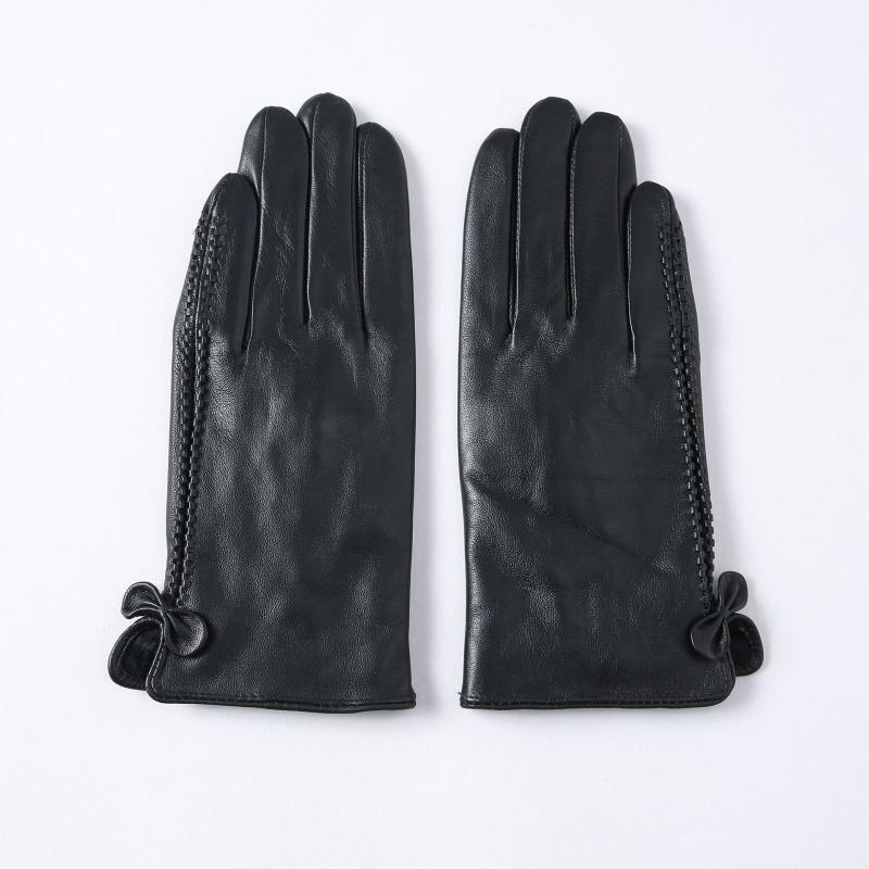 レディース 手袋 本革 羊皮 冬用 保暖 タッチ対応 防風 蝶結び 黒 通勤 自転車 運転用 グローブ 暖か 起毛 光沢加工 ファッション