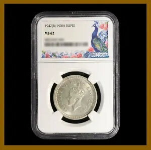 英領インド 1 ルピー、1942 (B) ボンベイ NGC MS 62 キング ジョージ 6 世 4437582-004