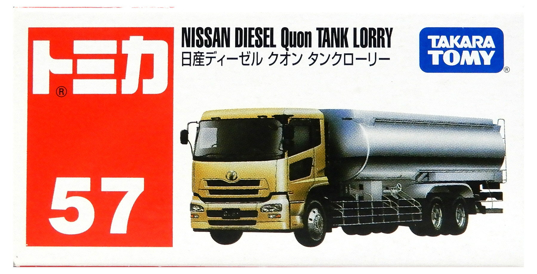【中古】 タカラトミー トミカ No.57 日産ディーゼル クオン タンクローリー 【B】 外箱開封済・外箱傷み / 性質上、多少の塗装ムラ等はご容赦ください