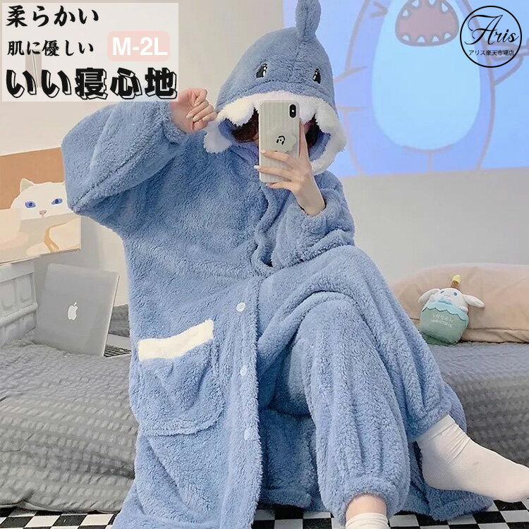 着ぐるみ サメ パジャマ レディース 長袖 ルームウェア 前開き 厚手 フード付き 上下セット 動物 冬 女性 大人 女の子 中学生 高校生 かわいい おしゃれ 産後 ママ 母の日 敬老の日 授乳 出産 修学旅行 部屋着 寝間着 寝巻き ゆったり 暖か ギフト プレゼント もこもこ